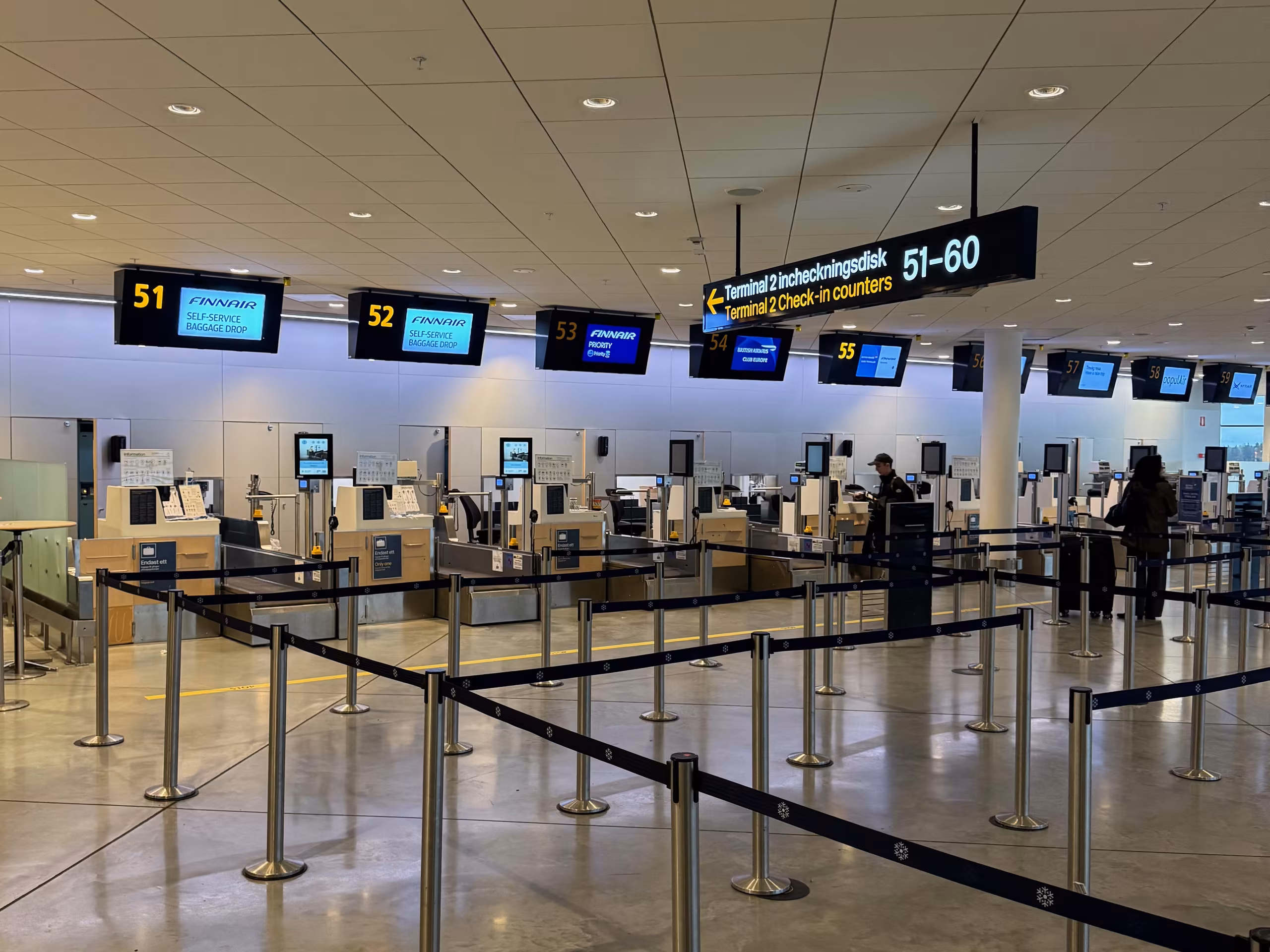 Etsin Finnairin baggage dropin ja tein lähtöselvityksen automaatilla. Myös laukunjättöpiste oli automaattinen. Tämä oli hyvä, koska matkatavarani painoivat yhteensä 47 kiloa. Ruumalaukun osuus tästä oli 23 ja käsimatkatavarain 24 kiloa. Koska käsimatkatavaran painoraja oli 8 kiloa, olisi ollut sangen ikävää, jos ne olisi punnittu. Ruumalaukku oli onneksi sallituissa rajoissa, koska se lähti lentoaseman uumeniin liukuhihnaa pitkin välittömästi viivakoodin skannattuani. Ei Specialbaggage C:tä tänä vuonna.
