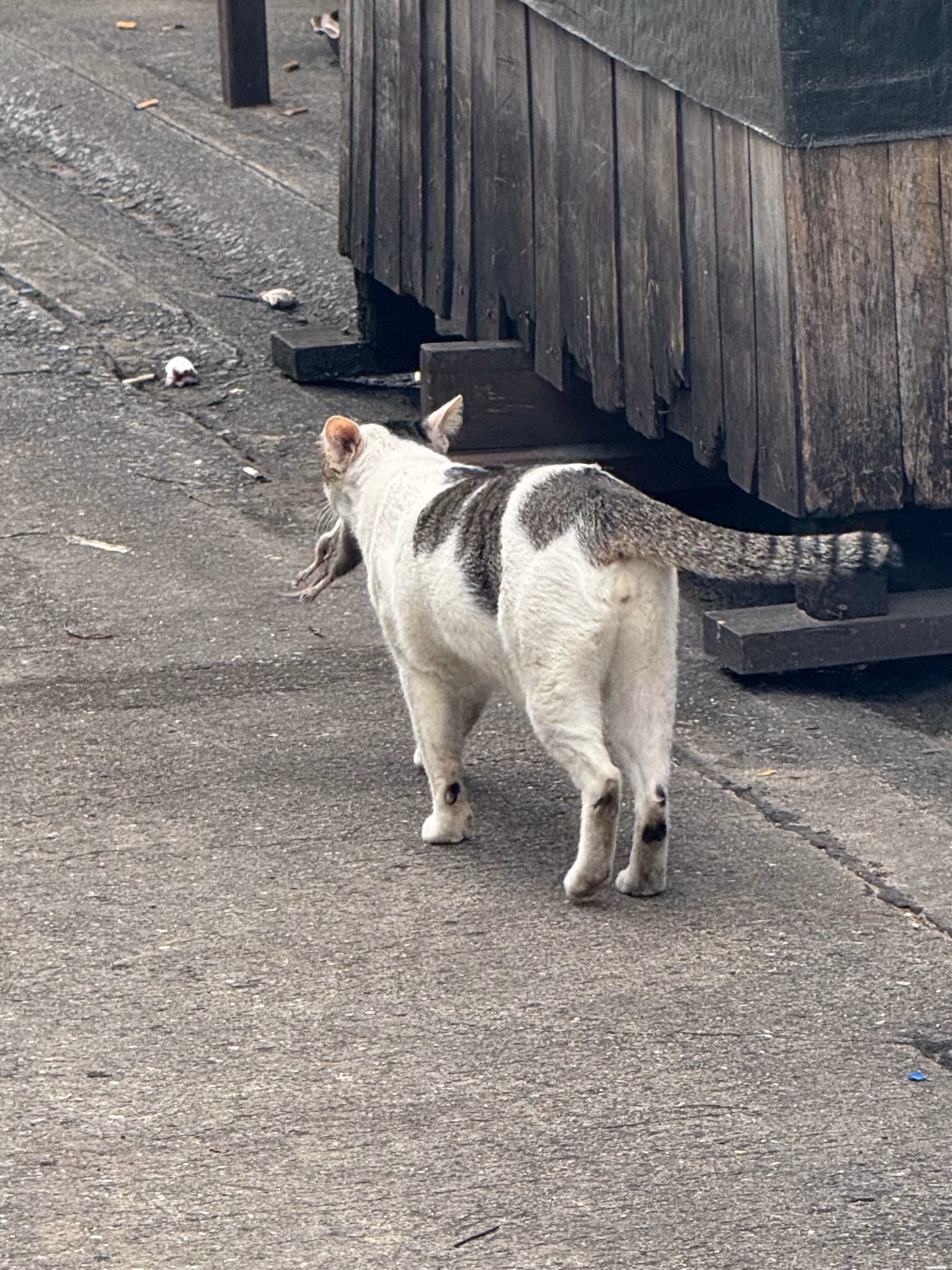 Pois lähtiessämme näimme paikallisen kissan kuskaamassa suussaan viemärirottaa (Rattus viemäriensis siamensis). Rotta oli pienikokoinen, kenties keskenkasvuinen. Se oli kuitenkin tunnistettavissa rotaksi lyhyestä ja paksusta hännästä.