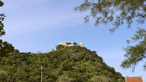 Kuvailin vähän ja palasin sitten kaupunkiin. Kävin tankkauttamassa ja sitten kuvasin mopon jälleen Prachuap-kyltin edustalla, dokumentoin temppelivuoren ja palasin kotiin.