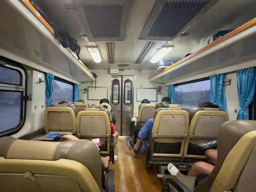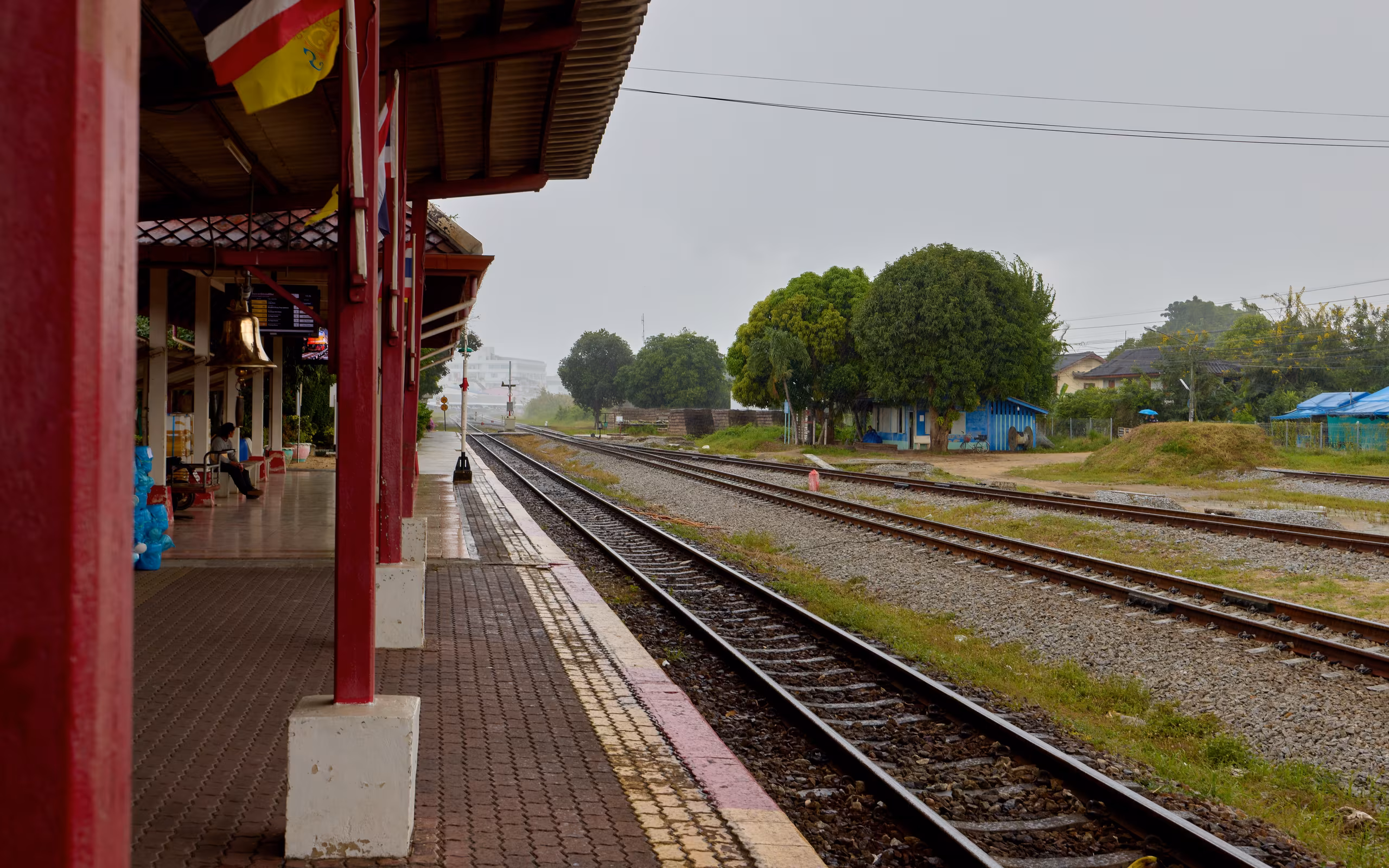 Jossakin vaiheessa paikalle tuli pääkaupungista Thon Burin asemalta saapuva juna, joka pysähtyi rautatieaseman eteen. Sekin taisi olla reilusti myöhässä.