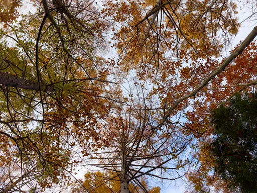 Metsässä kävelyä seurasi yli kilometrin verran. Sää oli viileä ja seurauksena korvani alkoivat särkeä. Tällainen kylmässä säässä aktivoituva korvasärky on ollut minulla lapsesta asti. Normaalisti suojadudun siltä kuulokkeilla, mutta huomasin unohtaneeni ne hotellille. Käytin putkihuiviani korvia suojaamaan, ja se korjasi ongelman.