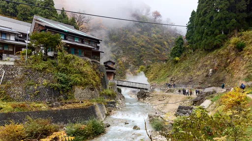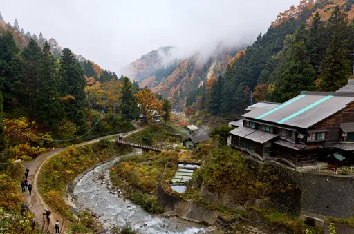 Syötyäni päätin kävellä rautatieasemalle 7-Eleveniin. Siinä menisi Google Mapsin mukaan noin 47 minuuttia. Otin kuitenkin matkalla niin paljon kuvia kylästä, ympäröivistä vuorista ja kylän keskellä kulkevasta joesta että olin tuossa vaiheessa vasta puolivälissä matkaa. Tajusin, että olin aivan ryokanini vieressä. Päätin unohtaa 7-Elevenin toistaiseksi, ruokaa sai ryokanistakin.