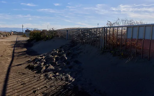 Oikealla puolellani oli jonkinlainen allonmurtaja. Päätin kiivetä sen päälle dokumentoidakseni rannan kunnolla. Aallonmurtajan reunalle oli kuitenkin rakennettu jonkinlainen aita, joka teki sinne pääsemisestä vaikeaa. Onnistuin kuitenkin.