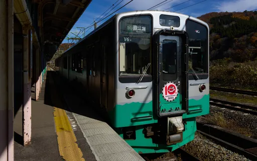 Olin uskoakseni tehnyt oikein valitessani tämän junan: maisemat olivat hienoja. Viherpunakeltaista metsää ja kyliä viiletti ohi samoin kuin kolme lumihuippuista vuorta: Takatsuma, Kurohime ja Myōkō.