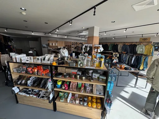 Kauppa ei ollut kovin suuri, mutta tavara oli erittäin laadukasta. Oli aiemmin mainittua NEMO:a ja ensimmäistä kertaa näin japanilaisessa kaupassa myös laajan valikoimaa Norrønaa ja Houdinia. Myös Peak Designin kameratarvikkeita oli kaupan. Tämä kaveri möi vain absoluuttisinta laatutavaraa.