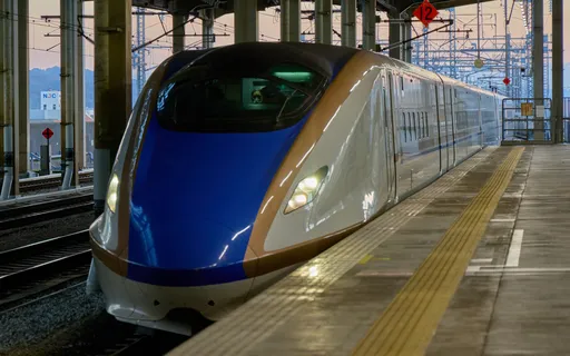 12-vaunuinen E7-sarjan shinkansen-juna Toki 325 saapui asemalle 16:19 ja lähti 16:20. Siirryin sillä Niigatan päärautatieasemalle hämmästyttävän nopeasti. Paikallisjunalla olisi mennyt 22 minuutin sijaan yli tunti. Tänään onkin tullut istuttua peräti viidessä erilaisessa junassa.