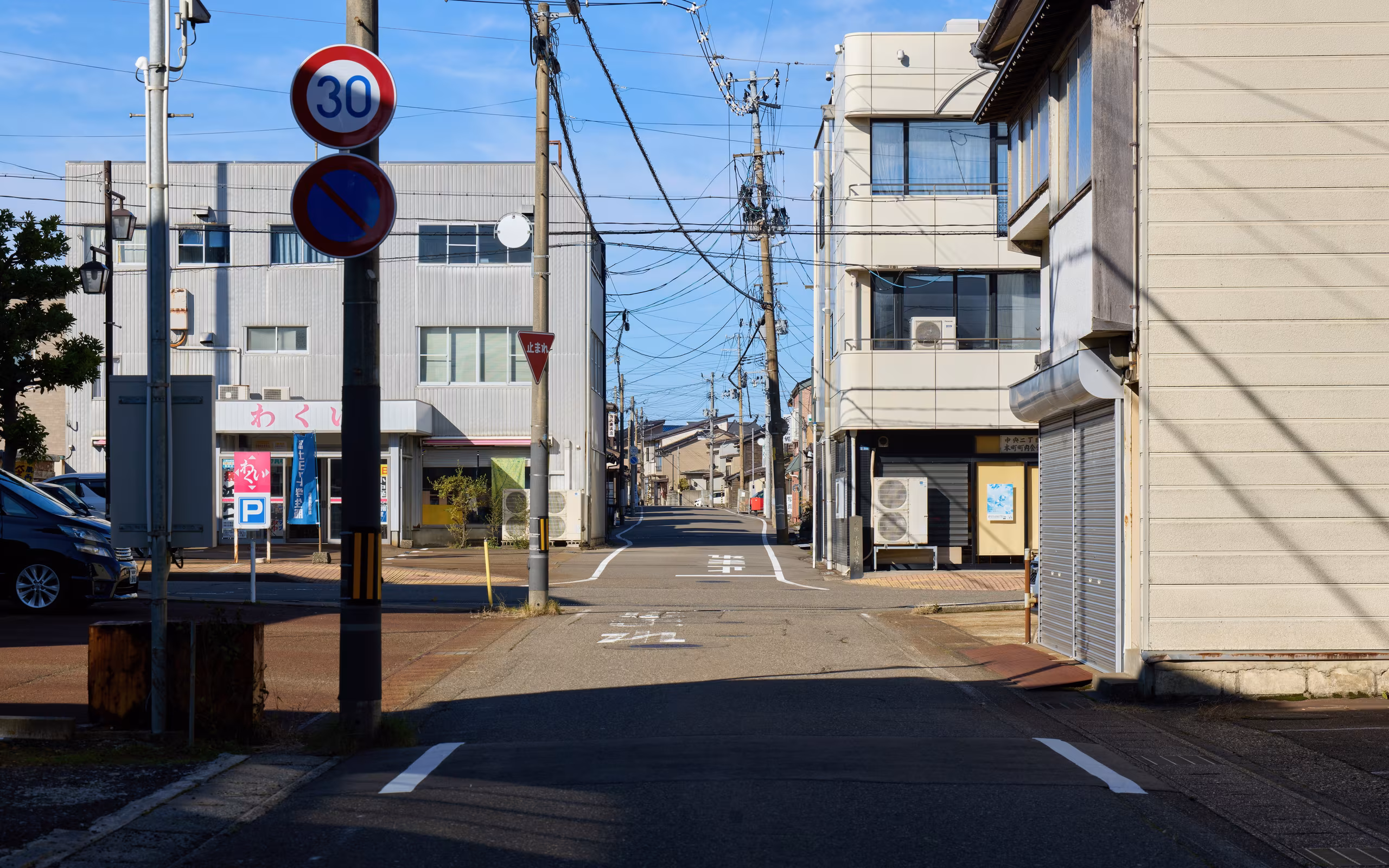 Pääsin vaikeuksitta Jōetsuun ja jäin pois melkein meren rannassa Naoetsu-nimisellä pysäkillä. Kävelin vartin verran kaupungin läpi rantaan.
