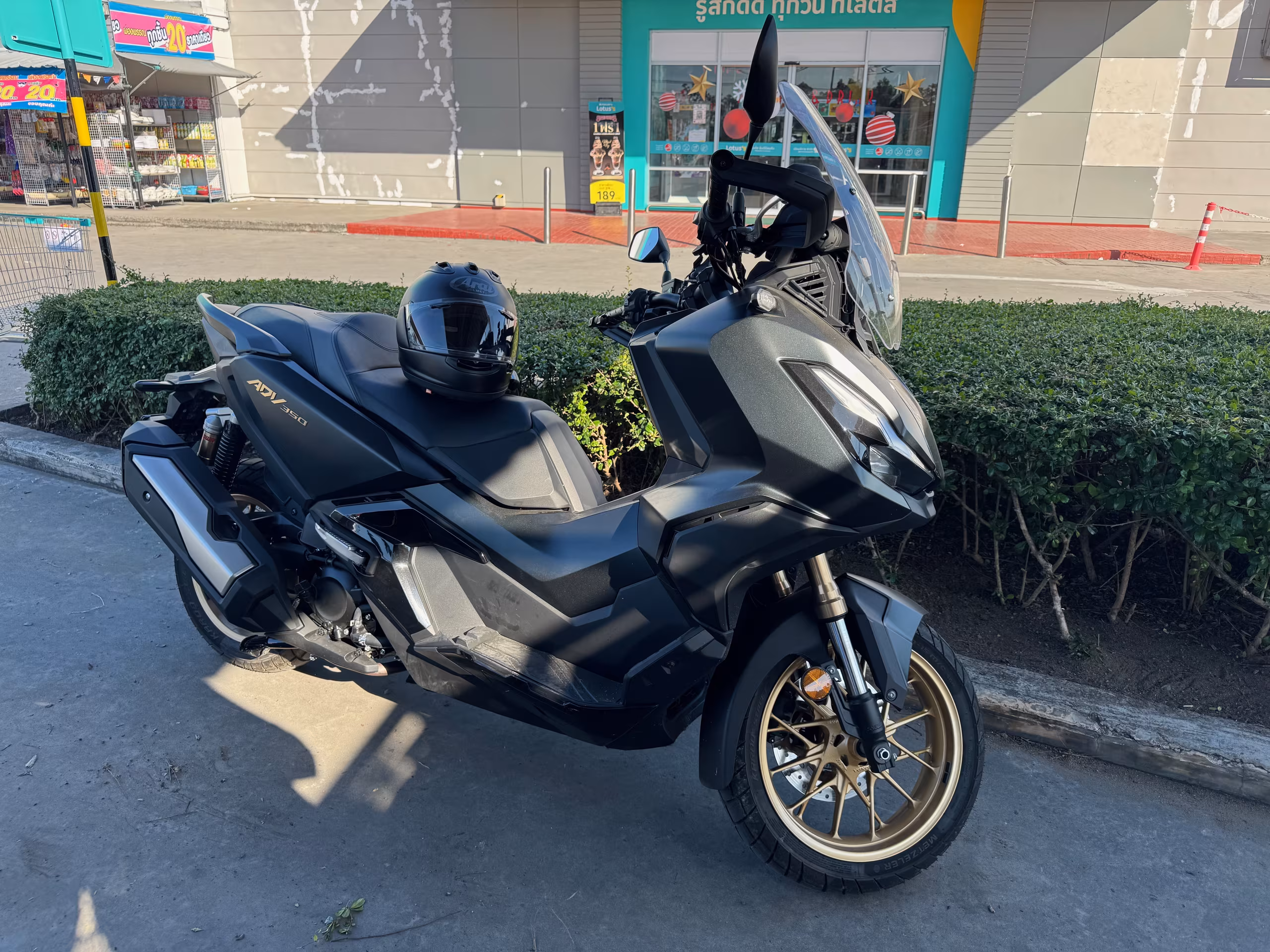 Pihamaalla mekaanikko ruuvasi irti punaisen väliaikaiskilven ja laittoi tilalle varsinaisen kilven. Jouduin pulittamaan kilven kehyksestä 100 bahtia.