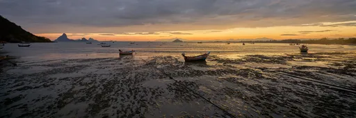 Rynkytin laatikkoa oikein olan takaa varmistaakseni, että se oli kunnolla kiinni. Sitten lähdin koeajolle meren rantaan. Aurinko oli juuri laskemassa. Meri oli jo varjossa, mutta Khao Lom Muak oli edelleen auringon valaisema. Dokumentoin näkymän.
