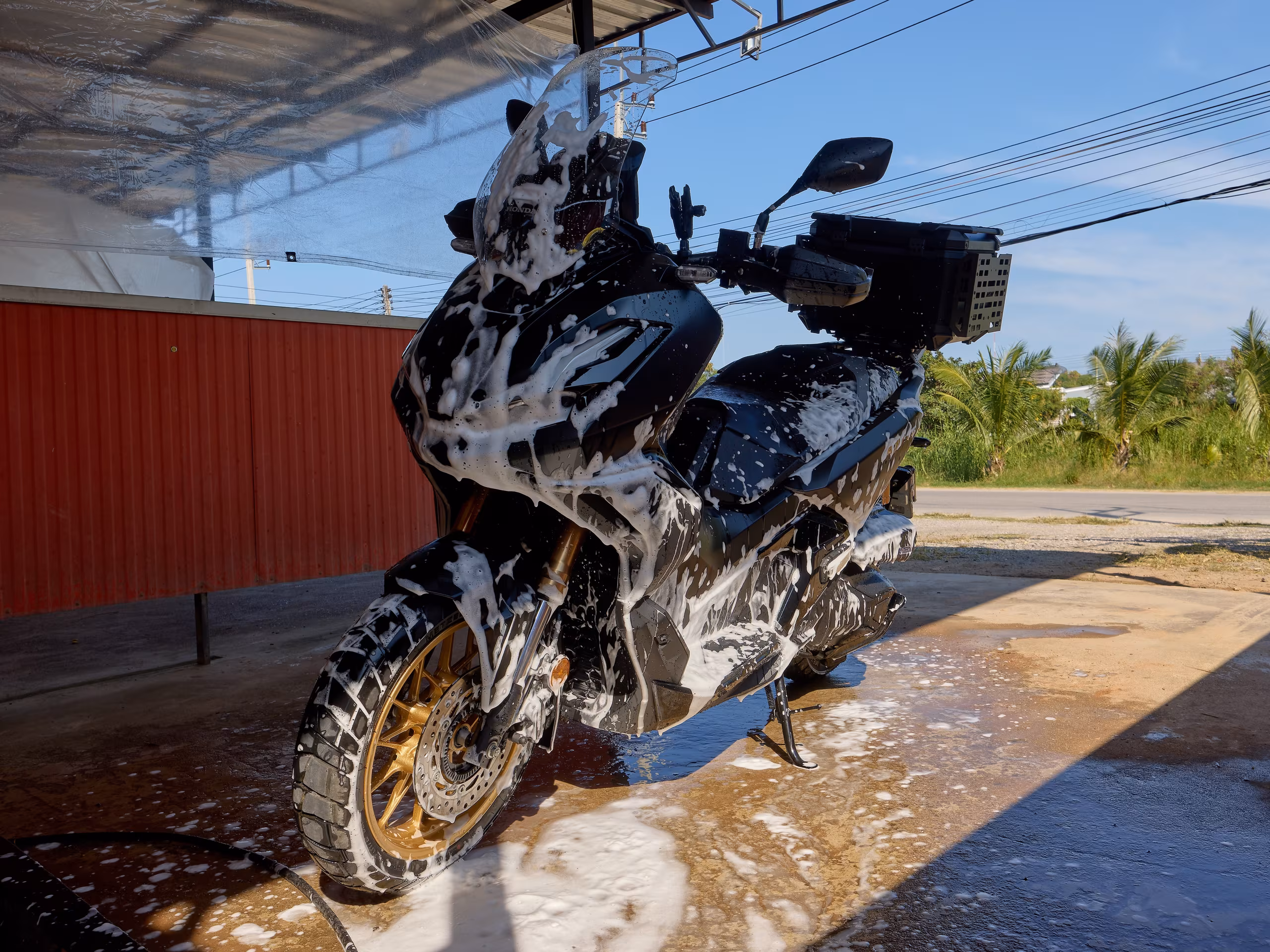 Työlistalla tänään oli se mopon pesu, joka jäi eilen tekemättä. Pohdin ensin, että voisinko tehdä sen rakennukseni parkkipaikalla, koska siellä näytti olevan useita vesiletkuja, joilla pesun voisi ehkä suorittaa. Päätin kuitenkin olla tekemättä niin, se ei vaikuttanut thaimaalaiselta tavalta.