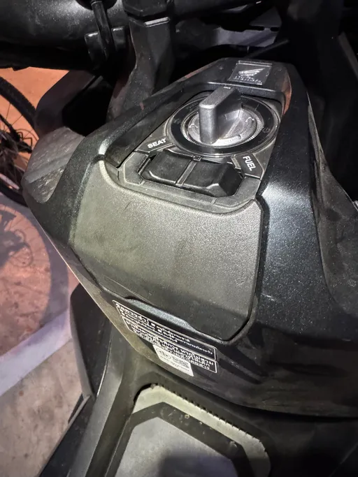 Illalla ropelsin mopoa vielä vähän. Irrotin jalkojen alla olevat matot ja sen aloin purkaa eturunkoa. Löysin eilen kadottamani muovisen luukun, joka teki minut hyvin tyytyväiseksi.