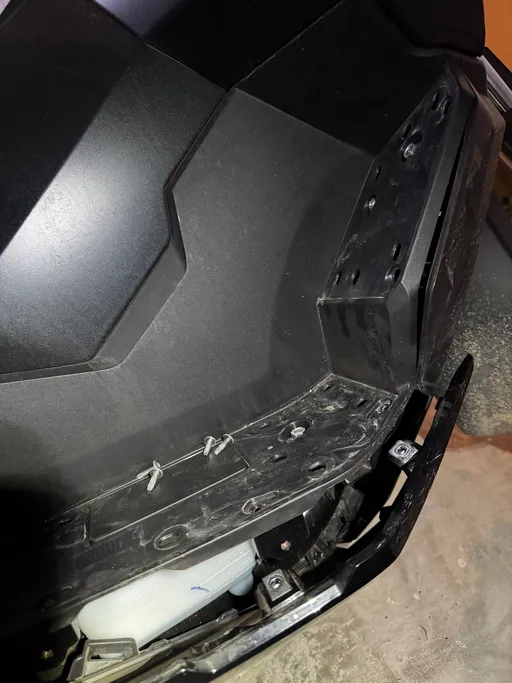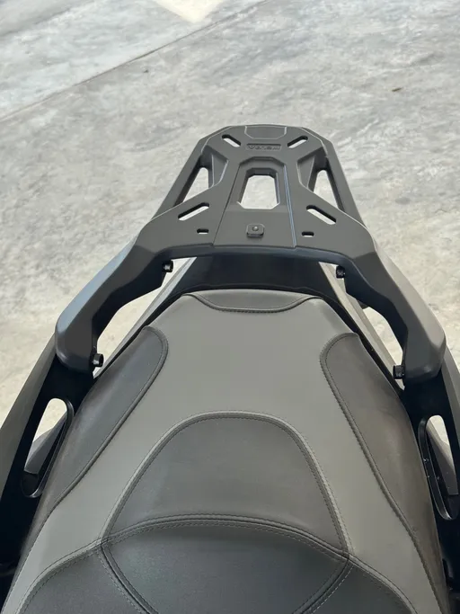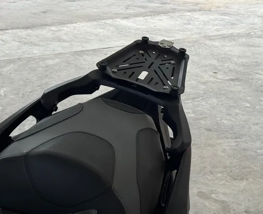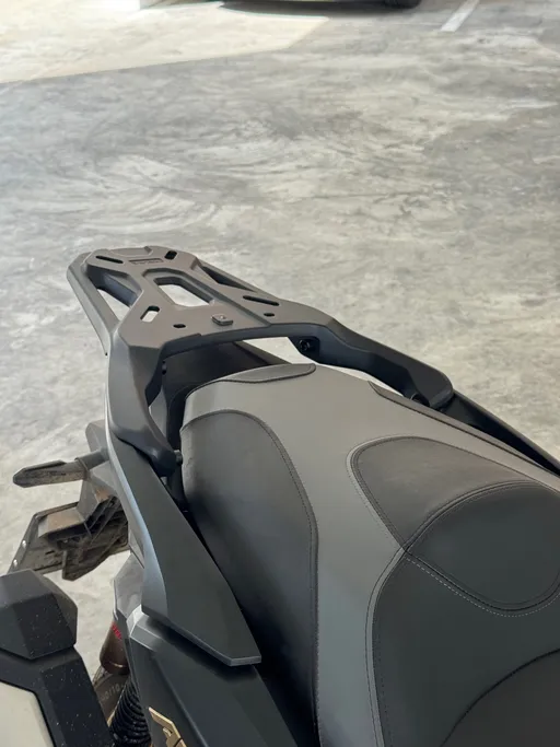 Irrotin laatikon kiinnitysliinat. Kävi ilmi, että ostamani takaboksi ei ollutkaan ABS-muovia kuten olin luullut, vaan mustaksi maalattua alumiinia. Ei muuten mitään, mutta alumiini oli hankautunut mopon tavaratelinettä vasten niin, että niin boksista kuin telineestäkin oli lähtenyt maalit. Olin tästä syvästi järkyttynyt. Hyvänä puolena uusi häntäluu, joka oli muotoilultaan edellisen kaltainen peittäisi lähes kaikki vaurioituneet alueet näkyvistä.