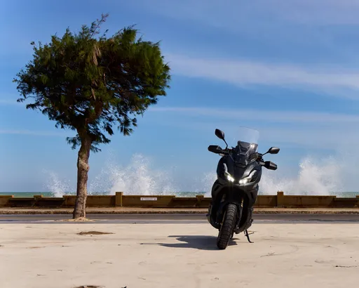Rannassa tuuli oli taas navakkaa ja aallot roiskuttivat vettä rantakadulle. En siksi ajanut kovin lähelle vettä. Löysin kuitenkin temppelivuoren vierestä mielestäni sopivan kuvauspaikan, jossa dokumentoin mopon.