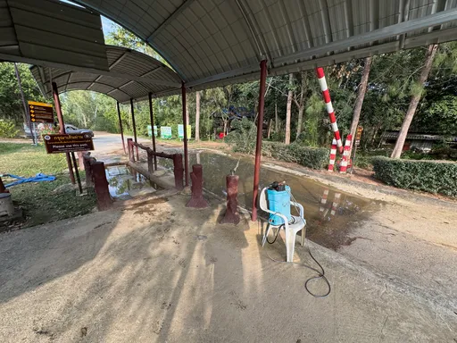 Olimme paikalla kahden aikaan, eli melkeinpä samalla kellonlyömällä kun paikka aukeni. Menimme ostamaan lipun. Kansallispuistolippu maksoi 200 bahtia / henkilö ja elukkainkatselulippu 850 bahtia / auto. Yhteen viralliseen elukkainkatseluautoon mahtui kuusi ihmistä ja hinta oli henkeä kohden sitä halvempi, mitä isommalla porukalla meni. Tästä syystä en ollut koskaan aikaisemmin käynyt täällä: olin säästeliäänä miehenä odotellut, että saan jonkun toisen mukaan jakamaan kustannukset.