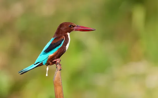 Tein pienen lenkin padon toisella puolella ja pysähdyin dokumentoimaan maisemaa. Havaitsin, että muutaman metrin päässä kyykötti kuningaskalastaja kepin nokassa. Se oli vieläpä samaa lajia kuin kansallispuistossa näkemäni. Dokumentoin linnun juuri samalla hetkellä, kun se töräytti takapäästään maahan valkoista nestettä. Kyllä se vain on niin, että ihmisen elämä ei ole valmis ennen kuin on nähnyt kuningaskalastajan kakkaavan.