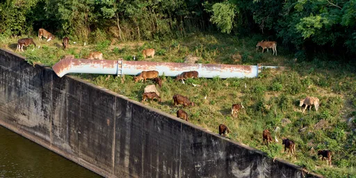 Ajoin takaisin padolle. Vastaan tuli lehmäpaimen, joka ajoi laumaansa patoaltaalle juomaan läimien tarpeen vaatiessa elukoita lautasille karahkan kanssa. Lehmähaikaroita käyskenteli nautojen ympärillä.