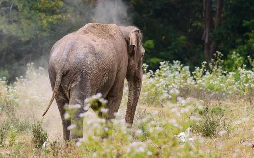 Norsu käytti kärsäänsä heittääkseen päälleen maassa olevaa tomua. Jonkinlainen suojakeino auringonpaahdetta ja ötököitä vastaan muistaakseni.