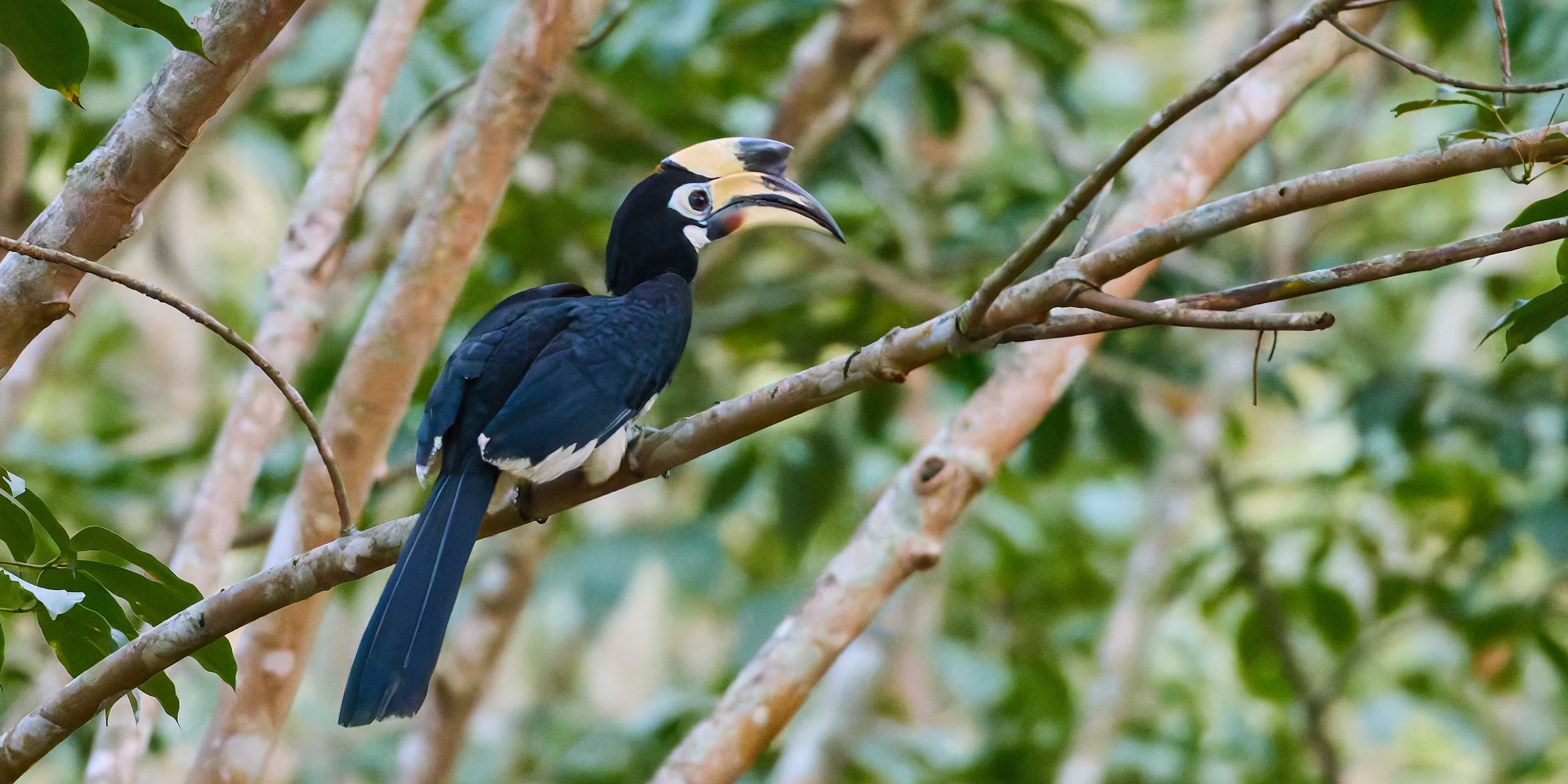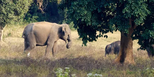 Ajoimme paikkaan, jossa oli viimeksi ollut paljon sarvinokkalintuja. Siellä oli edelleen sarvinokkia lentelemässä ympäriinsä. Lisäksi näimme savannilla norsun poikasineen. Hetken päästä havaitsimme myös, että puurajassa seisoskeli toinen norsu. Yhdelläkään tänään nähdyllä norsulla ei ollut syöksyhampaita (paitsi myöhemmin kuvista löytyi yksi syöksyhampaallinen), mutta osa oli kuulemma silti urosnorsuja. Evoluutio oli kai suosinut viime vuosisatoina syöksyhampaattomia uroksia, koska ihmiset metsästivät norsuja nimenomaisesti syöksyhampaiden vuoksi.