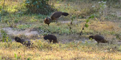 Matkalla toiselle elukankatselupisteelle näimme tien sivussa lauman gaureja. Dokumentoin elukat parhaani mukaan, joskin puut estivät ikävästi näkyvyyden. Lähimaastossa oli myös joitakin kanan kaltaisia lintuja.