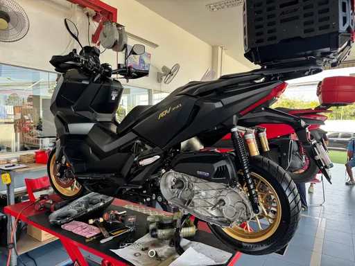 Jossakin vaiheessa menin puhuttelemaan omistajaa ja kehuin hänen pyöräänsä. Kysyin, onko mopon edessä oleva näyttöruutu hänestä hyödyllinen. Hänen mukaansa oli. Myös lisävalot olivat hänestä tärkeät, koska kun mopossa on sellaiset, näkevät muut tienkäyttäjät heti, että kyse on isosta pyörästä. Tällainen Forzan tai ADV:n kokoinen “big bike” muistuttaa nimittäin kaukaa nähtynä huomattavasti pikkukylän Kalevi-sedän museorekisteröityä Honda Wavea, joka kulkee korkeintaan 30 km/h. Jos sivutieltä kääntyvä Isuzu D-Max arvioi pääväylällä ajavan kaksipyöräisen nopeuden väärin ja päättää ajaa eteen, voi se johtaa vaaratilanteisiin. Päätin pitää tämän turvallisuusnäkökohdan mielessä.
