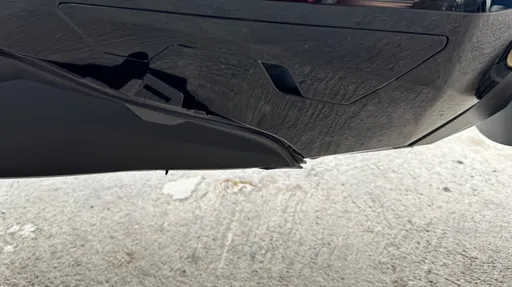 Kun pesu oli valmis, työntekijä tökkäsi merkitsevästi Rocinanten pohjan sivussa olevaa muovipaneelia. Muovinpalaset olivat lomittuneet jotenkin erikoisesti. Pohjaan oli osunut matkalla kivi tai useampikin, ja seurauksena alimmaisena oleva muovinpala olikin päätynyt päällimmäiseksi.