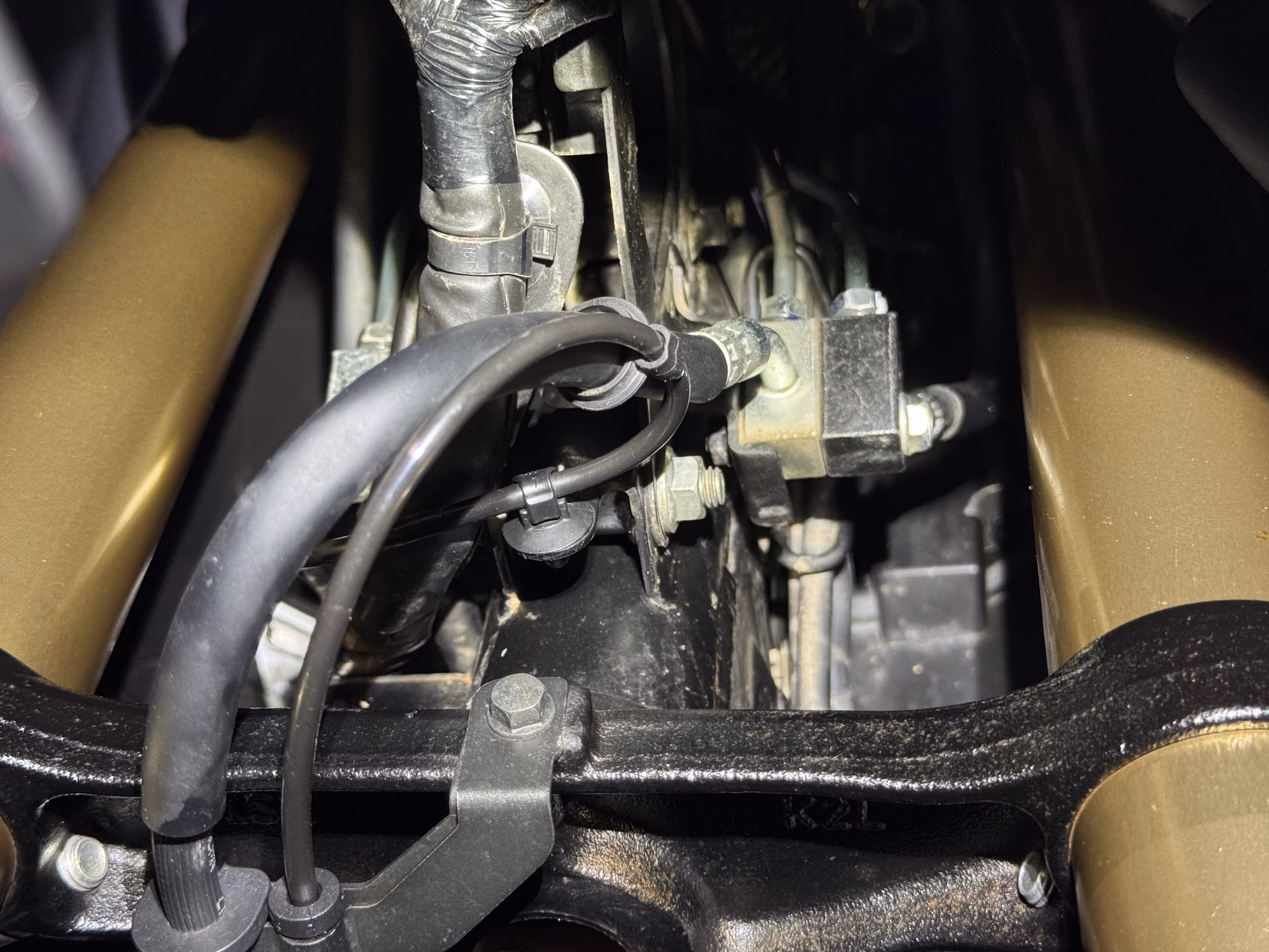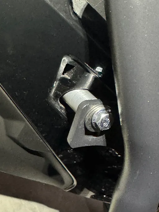 Aloin sitten ruuvailla kaatumarautoja paikoilleen. Ne koostuivat kolmesta osasta: vasen, oikea ja etuosa. Kiinnityspisteitä oli yhteensä seitsemän. Niistä viimeinen oli etuosassa etuhaarukan tienoilla, ja kesti aika kauan saada siellä oleva mutteri auki kiinnitystä varten.